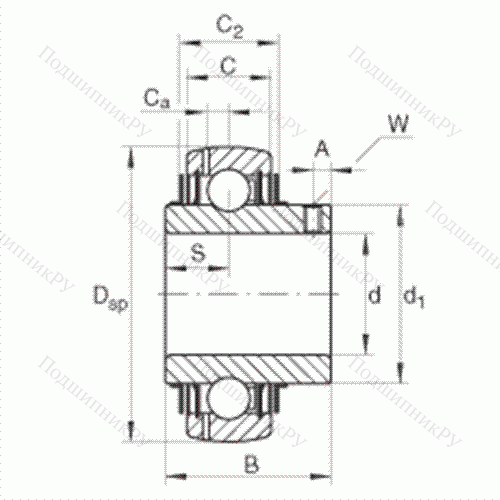 сферическое наружное кольцо, фиксация резьбовыми штифтами, двусторонние RSR-уплотнения, с защитой от коррозии