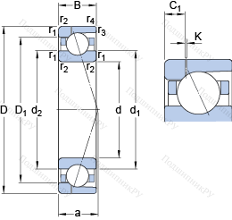 | Номинальная статическая грузоподъёмность | C0 | 65.5 | kN | |